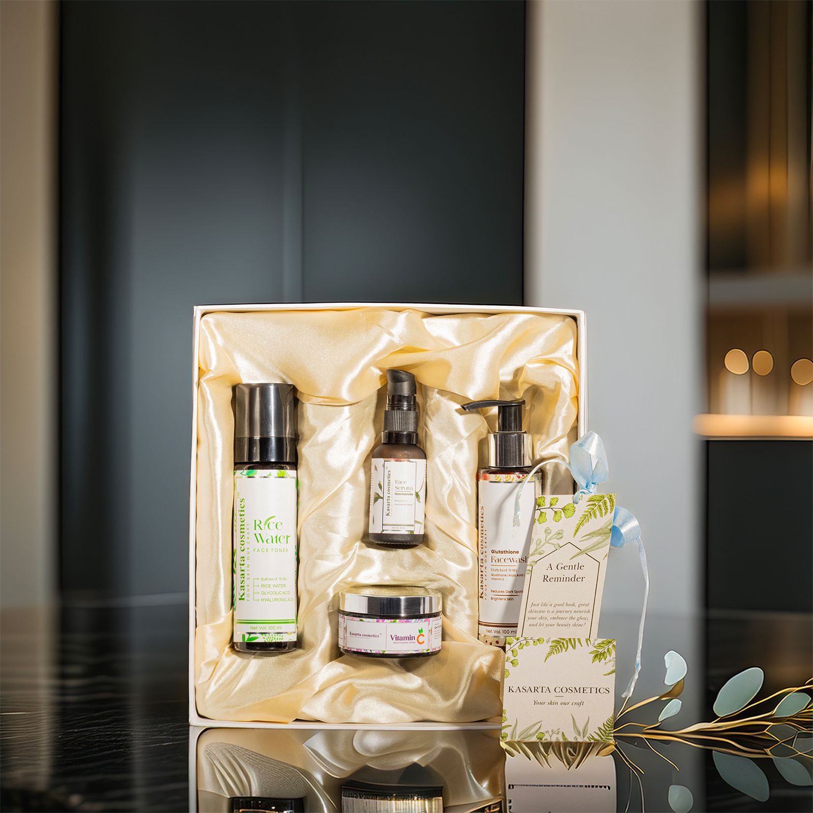 Our products are thoughtfully formulated using skin-loving ingredients, advanced cosmetic science, and rigorous quality standards. Every Kasarta product is designed to nourish, protect, and rejuvenate the skin while delivering visible results you can feel and trust.