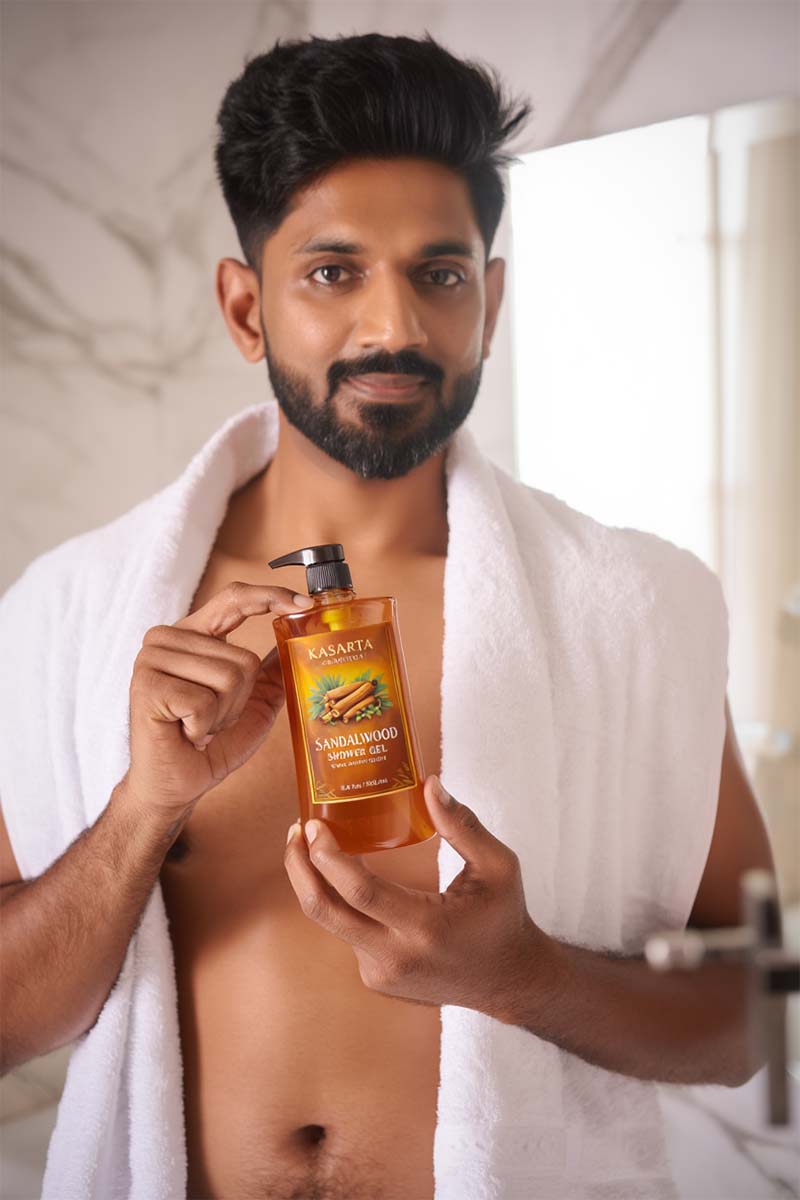 The Kasarta Sandalwood Shower Gel gently cleanses your skin while wrapping you in the warm, soothing fragrance of pure sandalwood. Its mild yet effective formula removes dirt, sweat, and excess oil without stripping away natural moisture, leaving your skin soft, refreshed, and delicately scented.